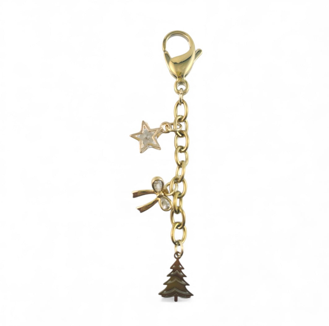 Add a touch of festive sparkle to your favourite purse, bag or STOCKING this holiday season! This elegant gold-tone charm features all the trimmings for the perfect tree. Makes a great present topper, hostess gift or stocking stuffer.