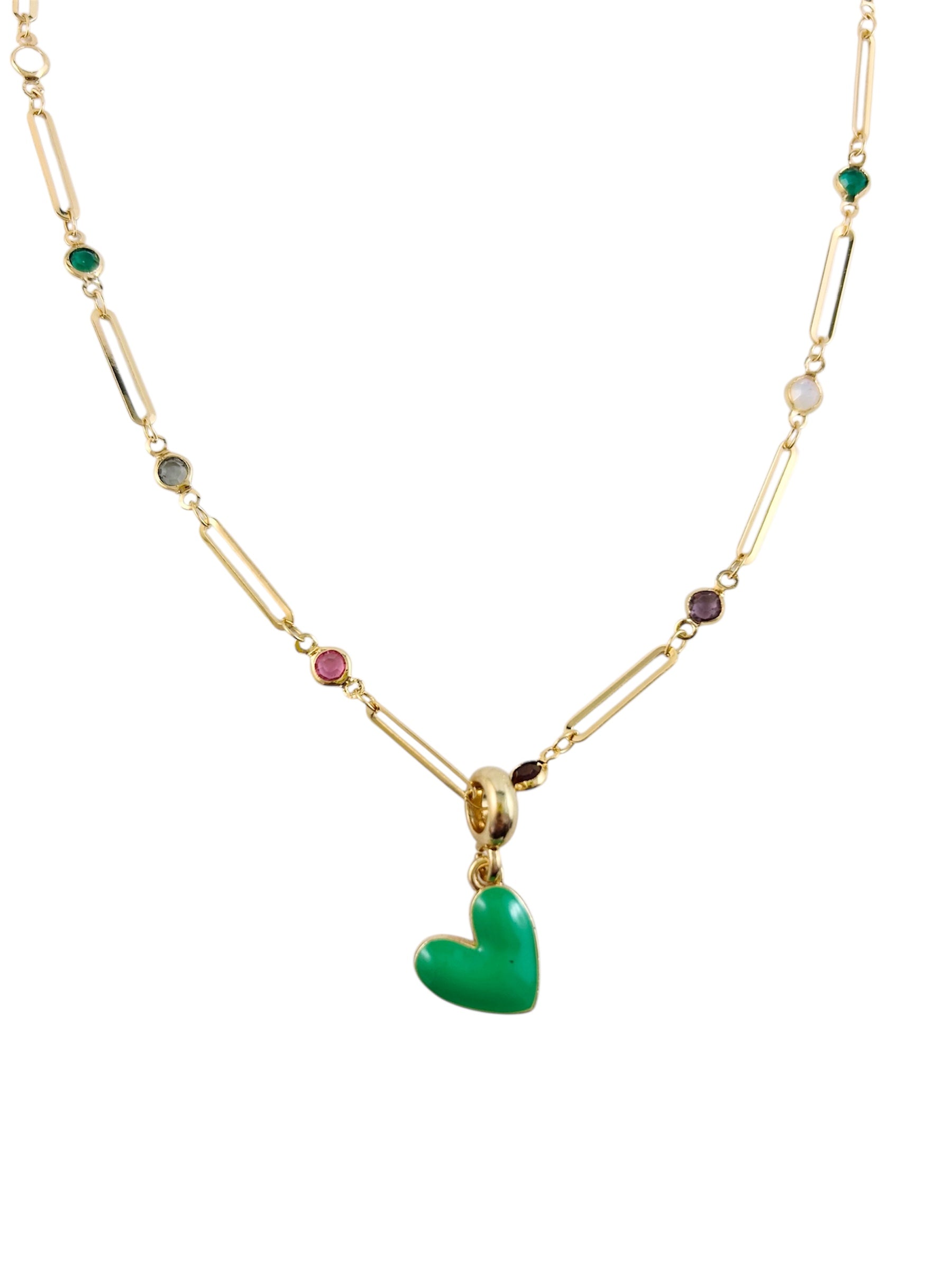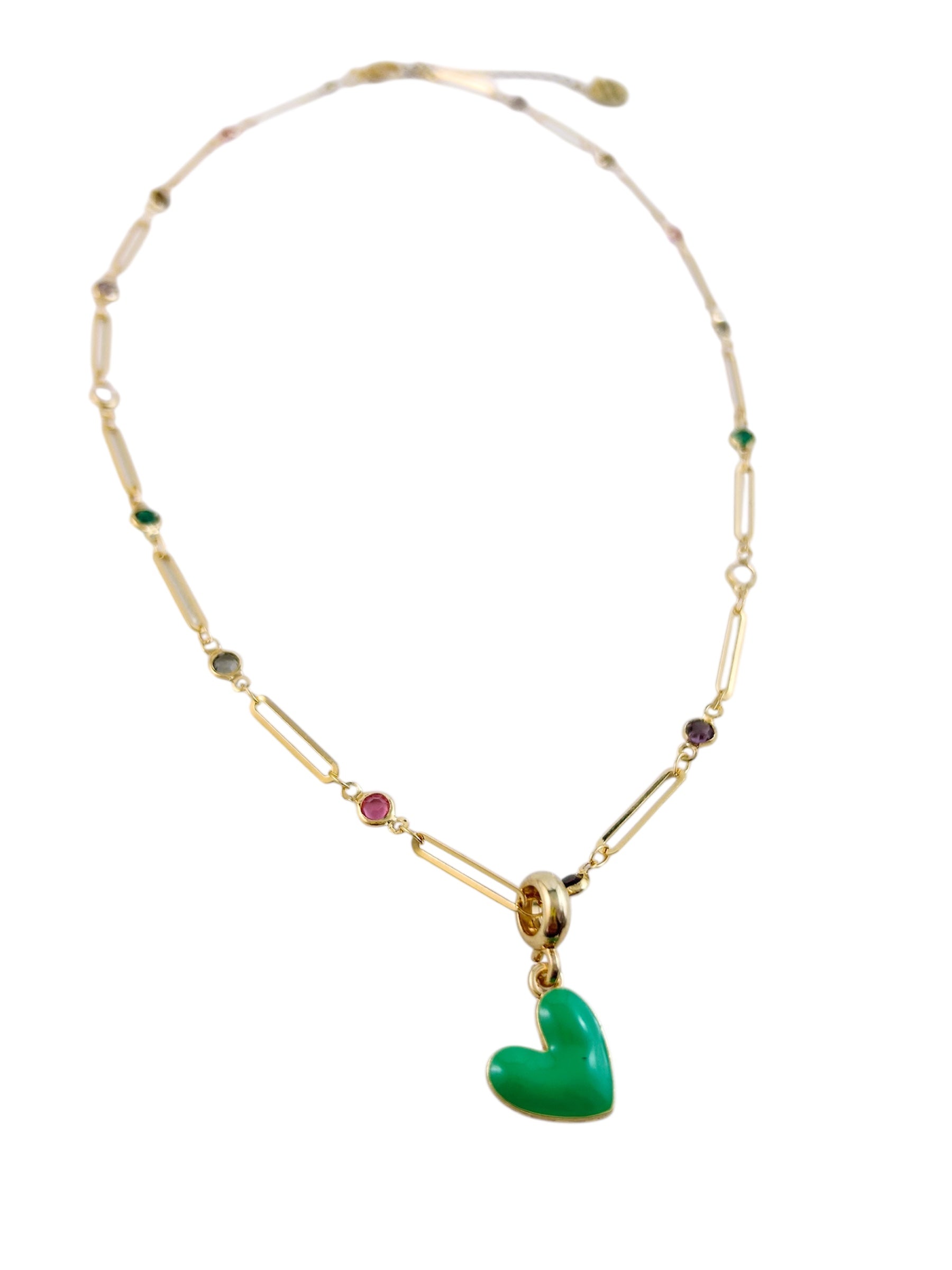 Materials: chain is 16k gold plated brass with glass connectors. Charm is enamel.