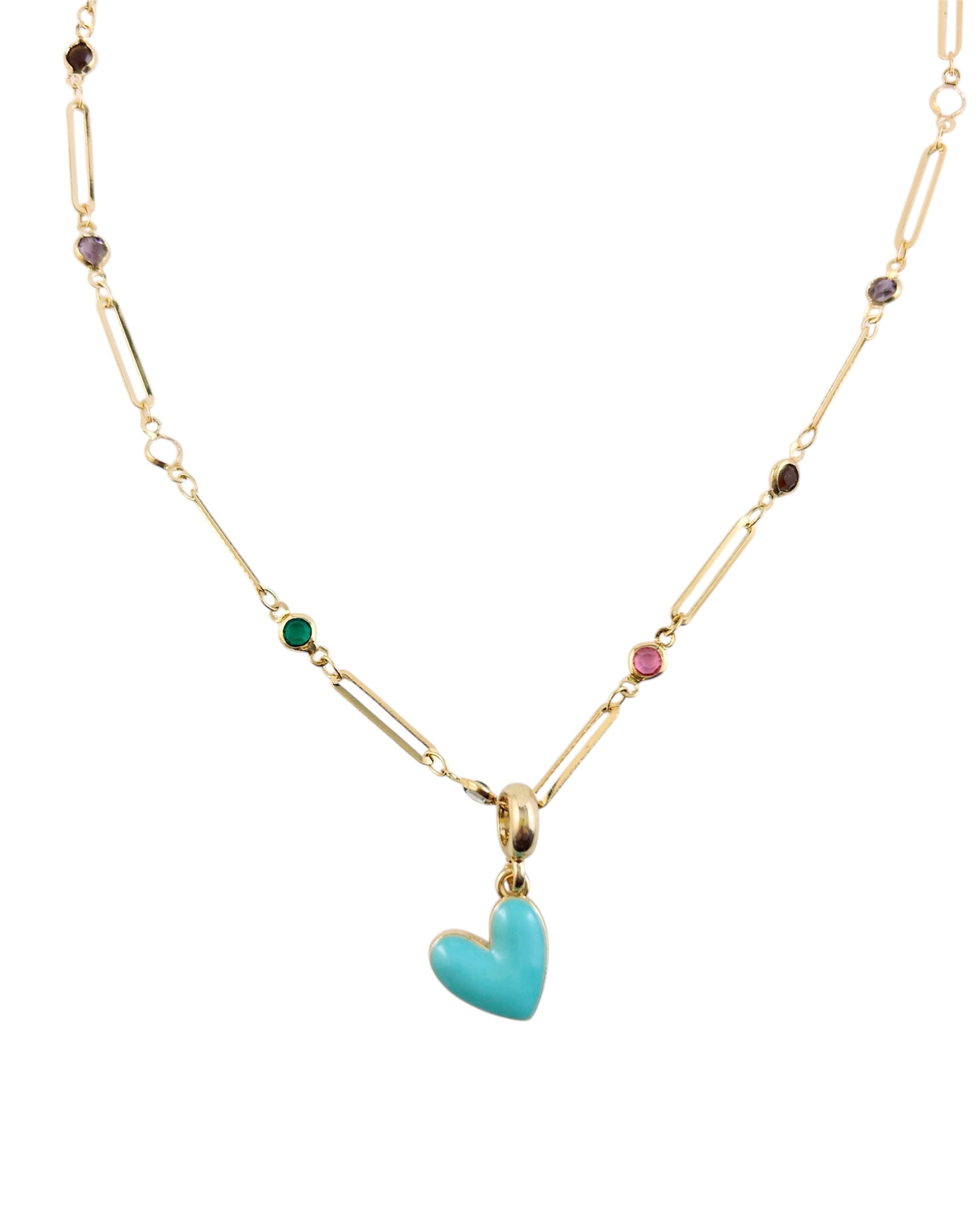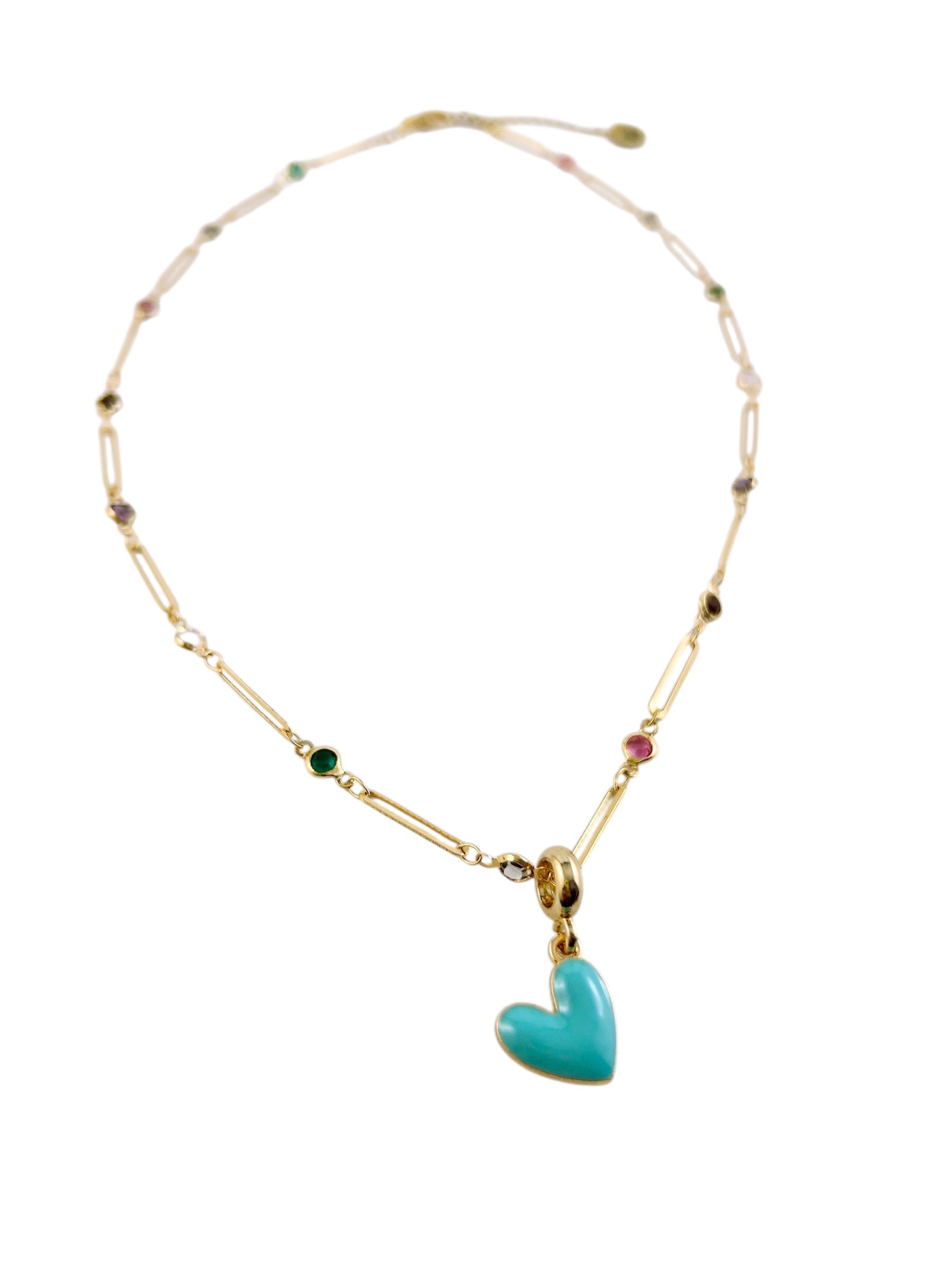 Materials: chain is 16k gold plated brass with glass connectors. Charm is enamel.